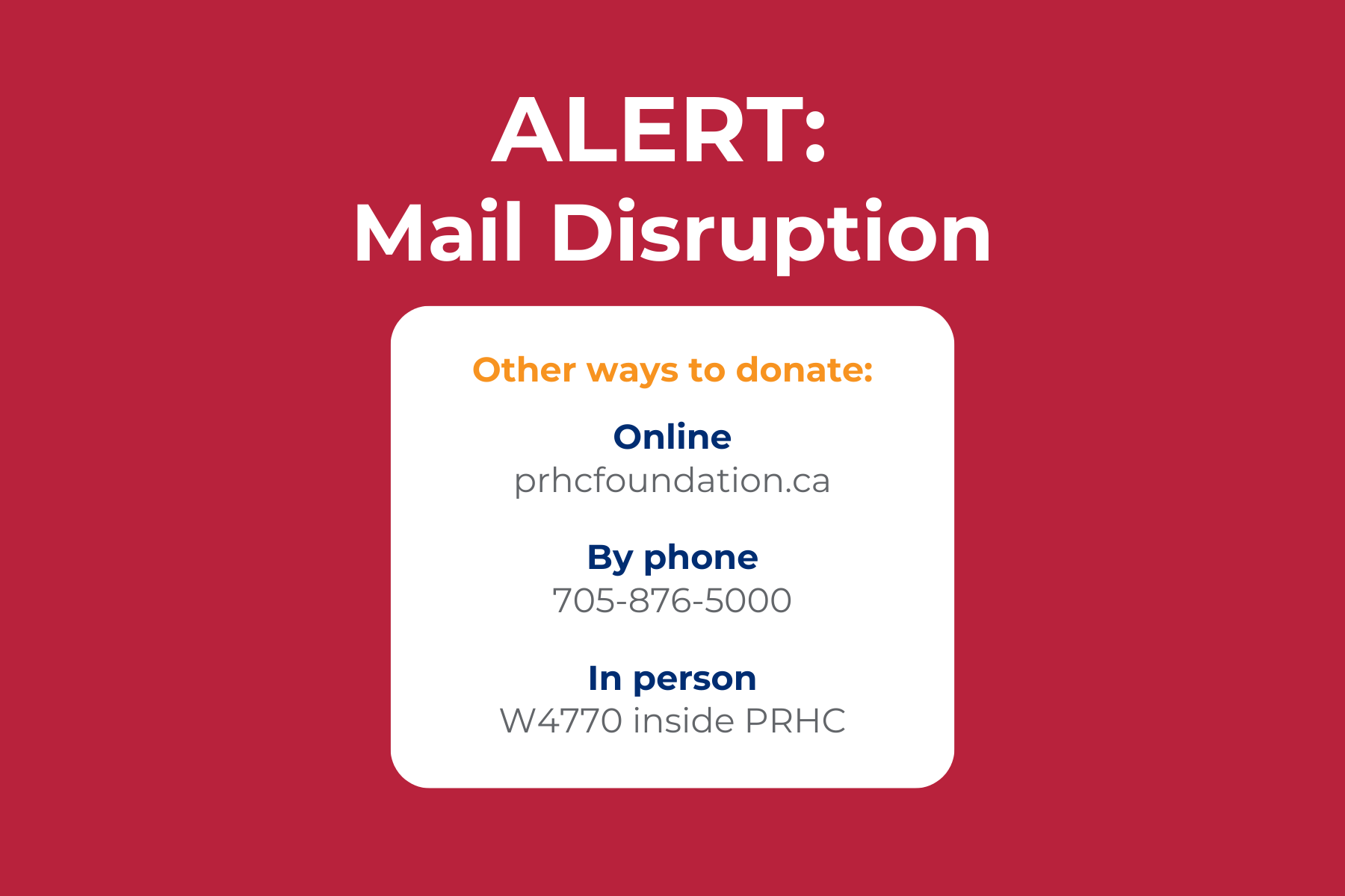 During the postal disruption, our commitment to reimagining health and care in our region remains strong. While the mail strike continues, there are other convenient ways to give.